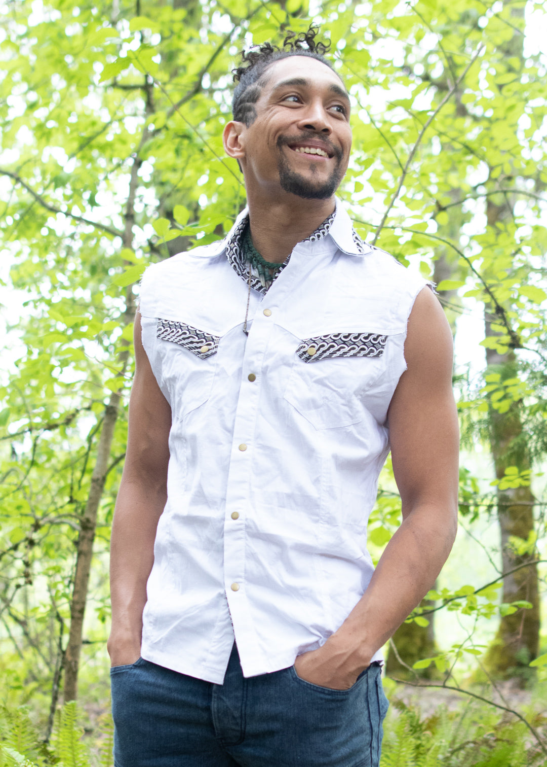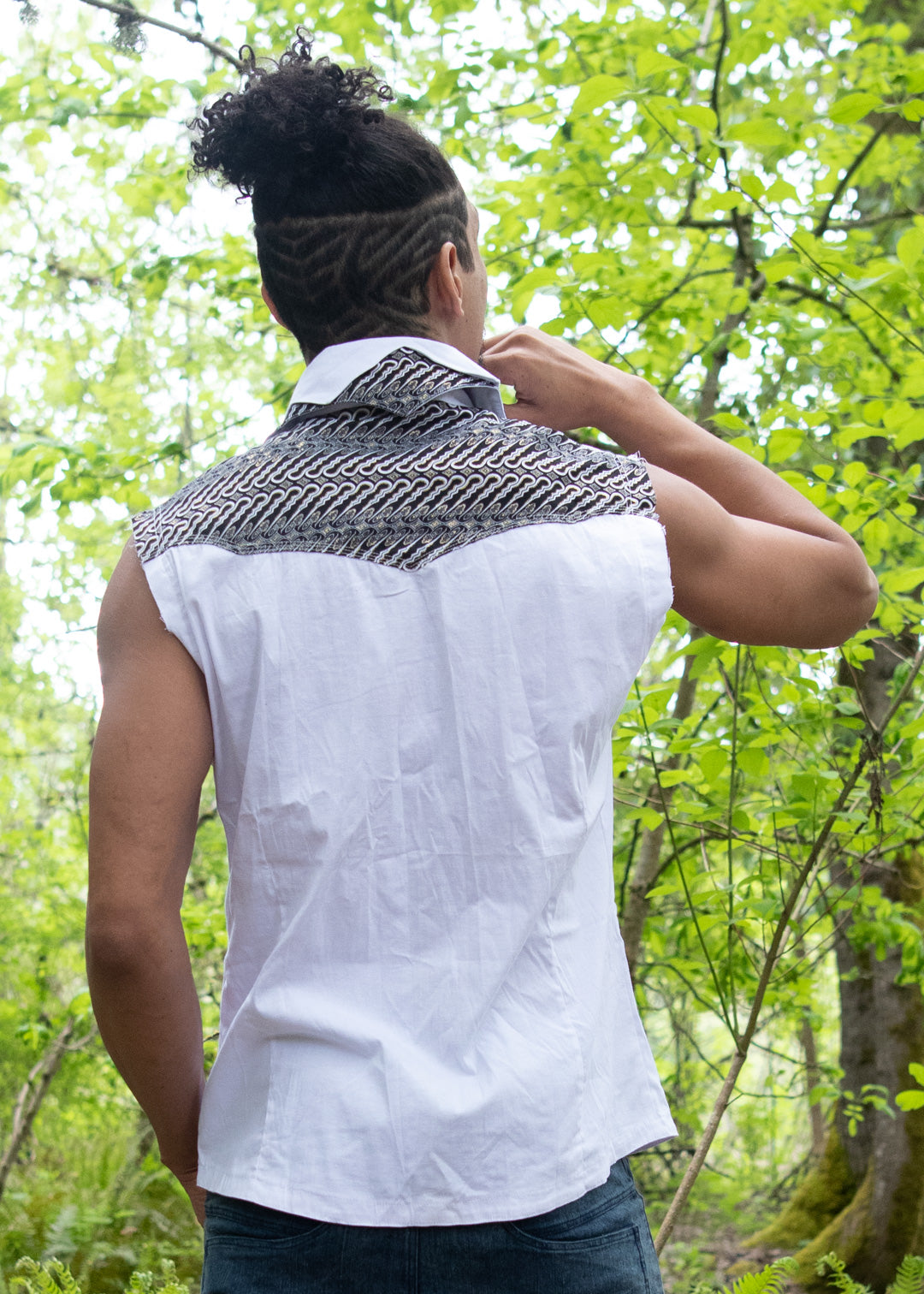 Sharp and sophisticated, our snap-up vest offers refined style when going sleeveless. Cut from our super smooth and stretchy poplin fabric, and accented with uniquely patterned fabrics sourced from some of our favorite Indonesian marketplaces, the Sleeveless Gayya Shirt will bring a tasteful edge to your flow-friendly wardrobe regardless of the season.