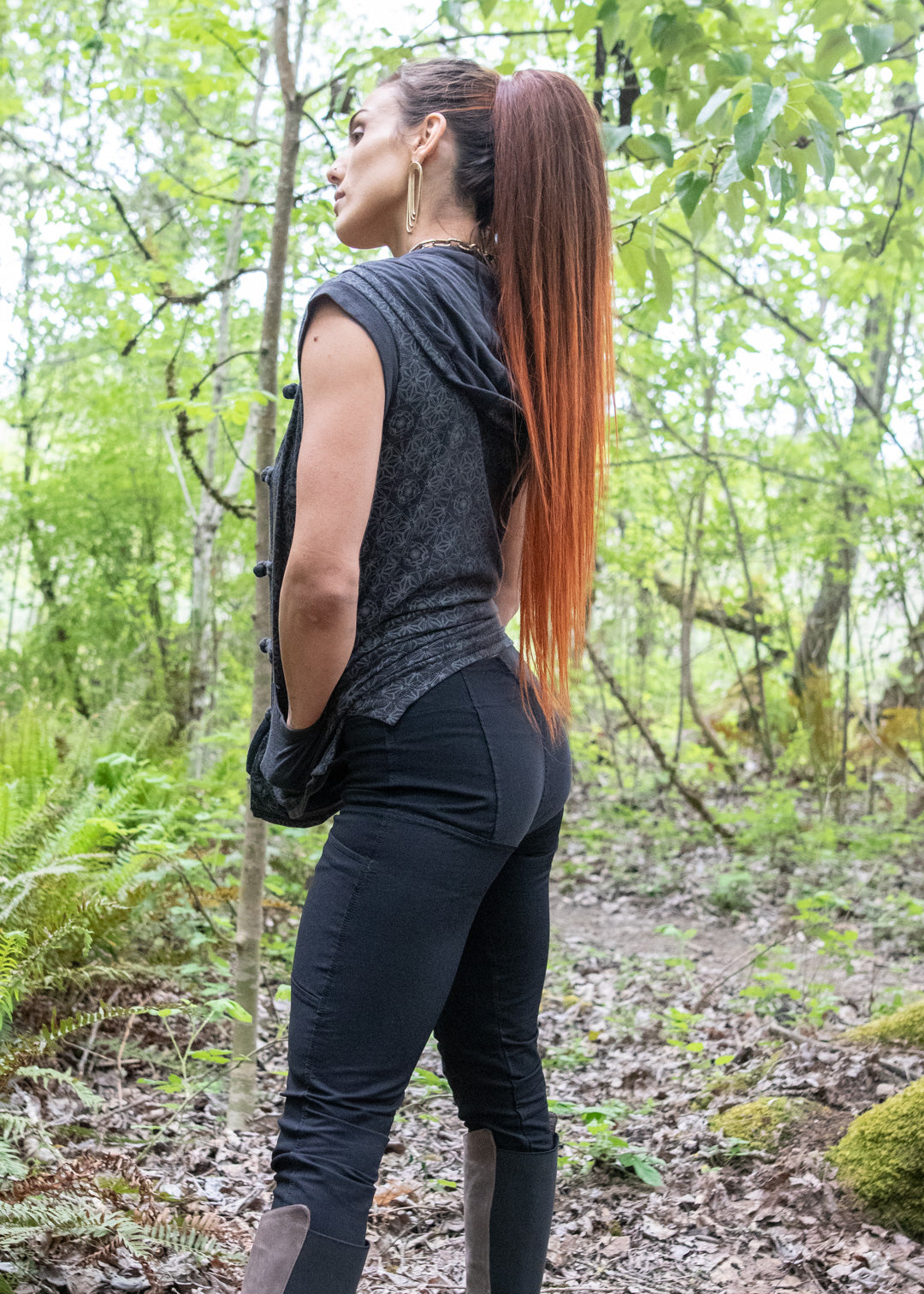 These stretchy, canvas pocket pants are guaranteed to satisfy your need for a little more support and FUNK-tion in your leggings!  Our thoughtful design includes a mid-waist rise, zipper front, adorable garter lines on the bum, and perfectly-sized phone pockets on the upper thighs.  Modern-day middle ages on the prairie are now your daily staple.